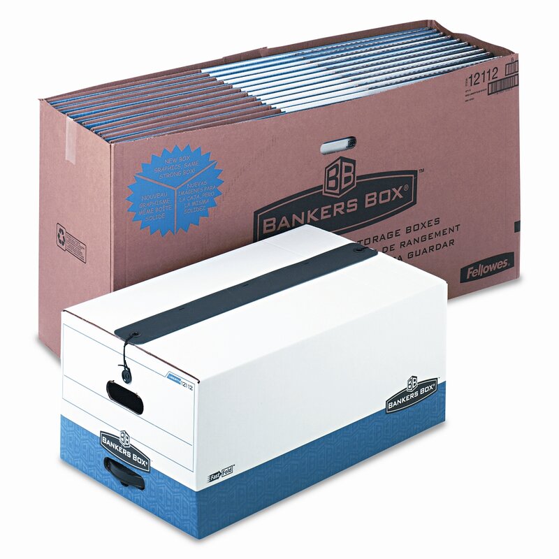 Includes a 3” seal that protects stored files from dust and dirt and ensures a flat top for stable stacking. Maximum security box with string and button closure keeps contents secure, even if box is overturned. Up to 50% stronger than other string and button boxes for stacking without shelving. FastFold quick and easy assembly. Reinforced plastic handles make it easy to pull box off shelving.