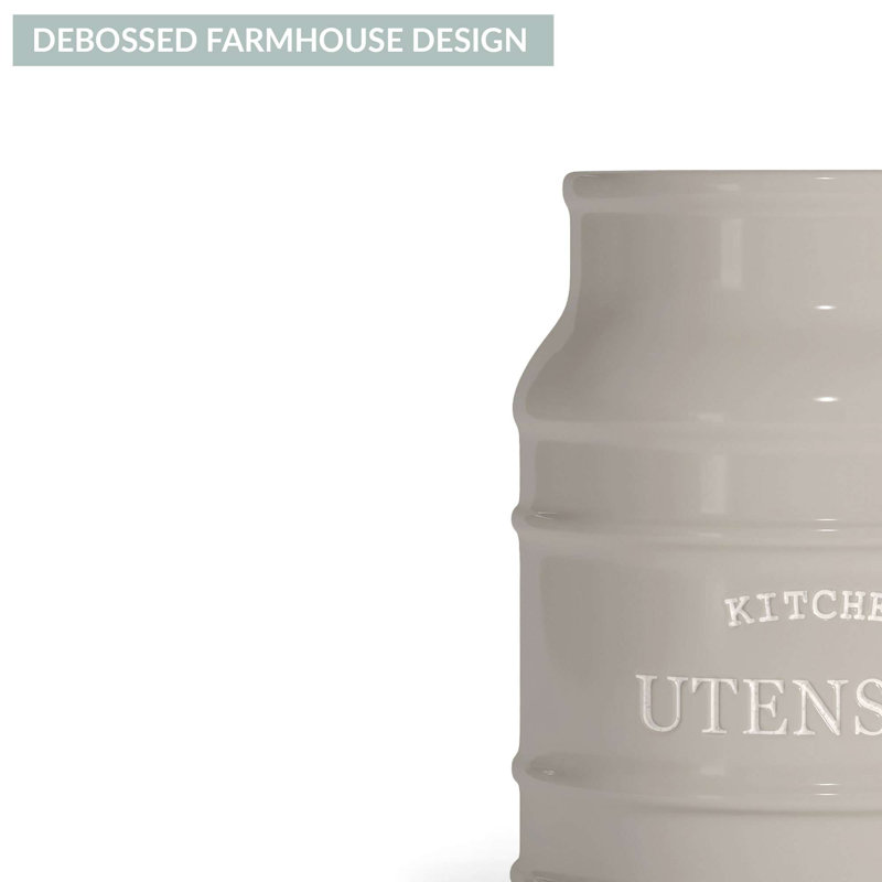 Ceramic Utensil Holder: Decorate, organize, and beautifully display your cooking utensils in this farmhouse kitchen utensil holder. A decorative kitchen utensil holder for your countertop that will keep your kitchen neat and free of clutter.