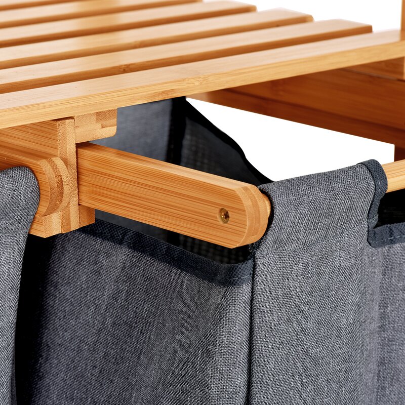 This bamboo double laundry hamper has been designed in a way that you attach the laundry bag to the wood frame and then slide that into position