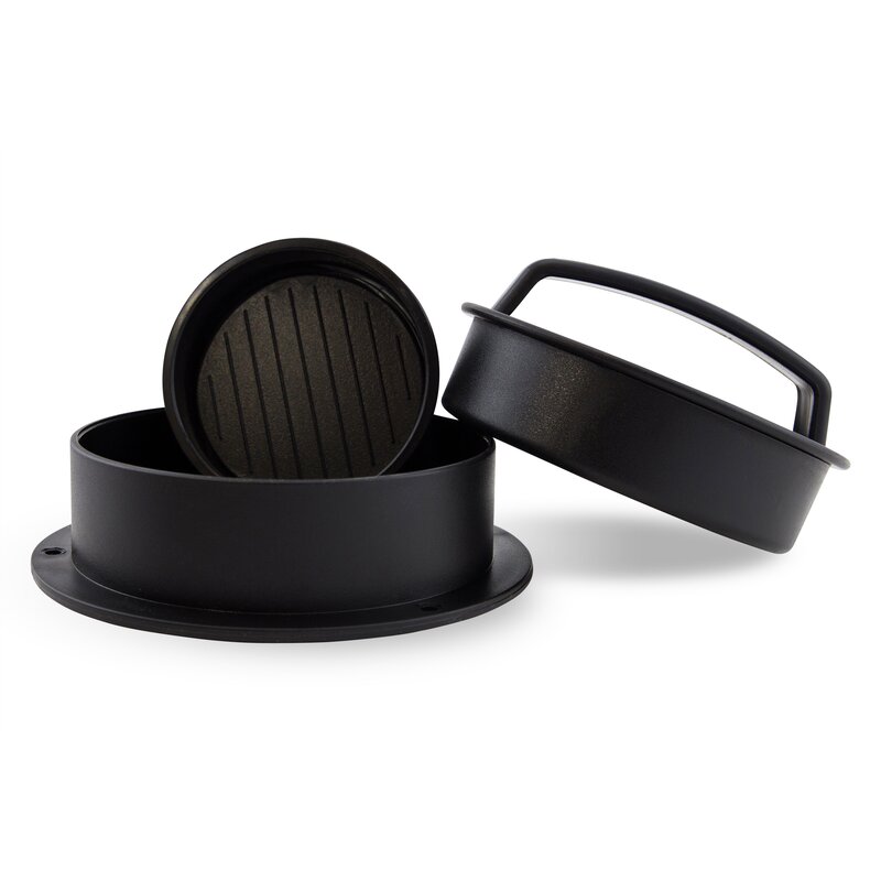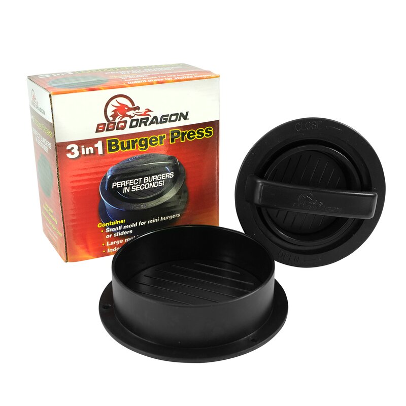 3-in-1 burger press and form make big burgers, stuffed burgers, and sliders – easy and quick! If you love burgers, you’ll love this unique tool. Great for families and cookouts. Makes perfect stuffed burgers in seconds by inserting cheese, onions, or other fillings. The small form makes perfect sliders without fuss. The large form makes thick, juicy burgers that are perfect every time and only take a second to form. Special low-stick plastic surfaces and removable form backs make it easy to press out burgers.