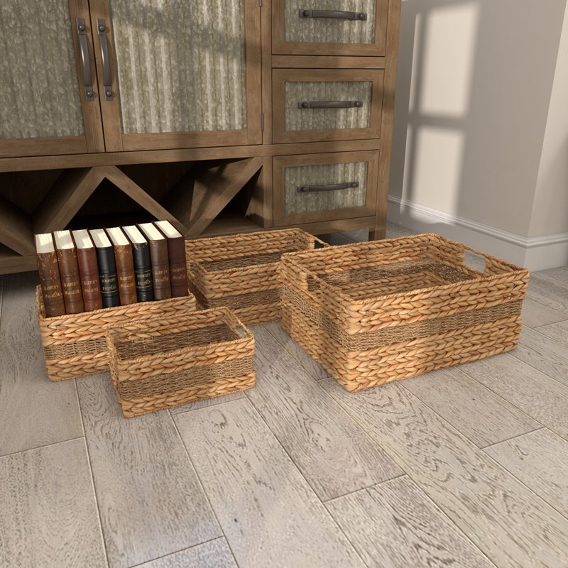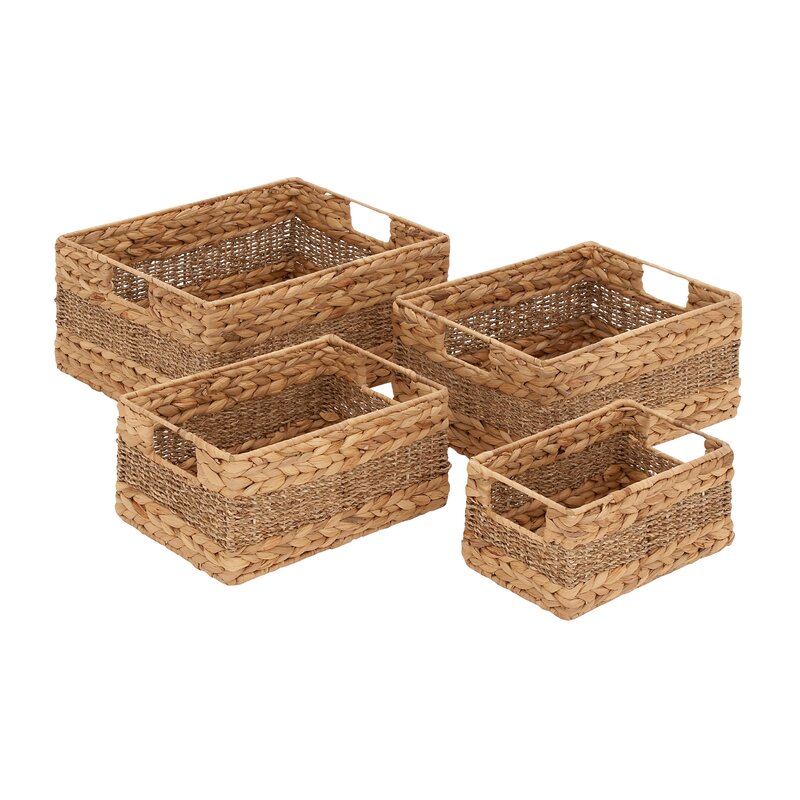 Add a dash of natural beauty within your light-toned living spaces as you place your favorite items and decorative memorabilia on this charming set of rectangular wicker baskets. This item ships in 1 carton. Nesting baskets for easy storage. Due to the handmade nature of these, there will be slight color, shape, and size variations, as well as loose fibers. Suitable for indoor use only. The maximum weight limit is 5 lbs. Made in Vietnam. This storage basket comes in a set of 4. Coastal style.
