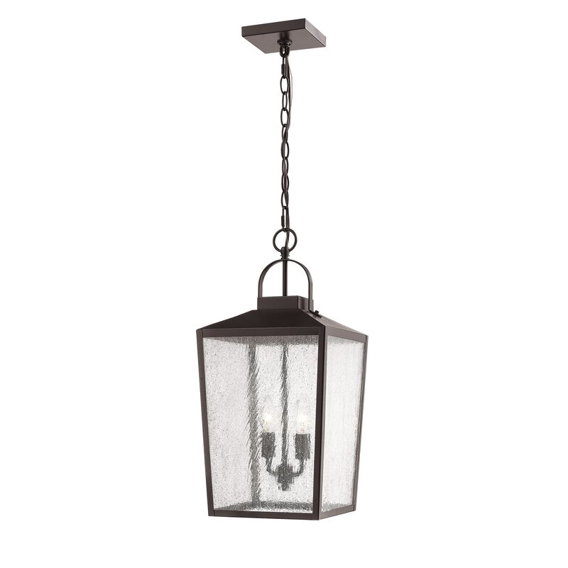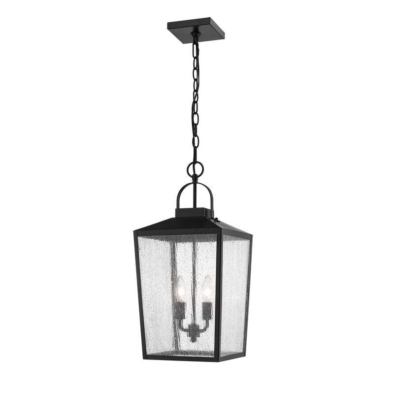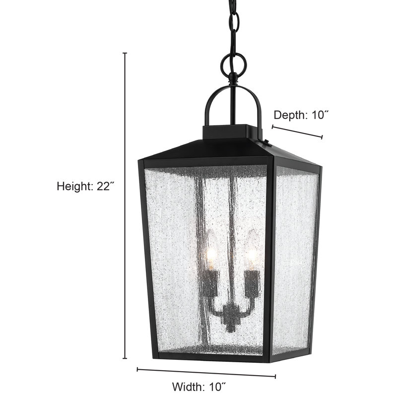 This 2-light outdoor hanging lantern illuminates porches and the pathway to your front door for a welcoming vibe. The fixture is crafted from metal with a classic empire silhouette and a sleek, solid UV- and weather-resistant finish. Clear, seeded glass panels add a hint of breezy, coastal charm and filter the glow from two bulbs (sold separately). This lantern hangs with the help of a height-adjustable chain. Plus, it’s rated for wet locations, so it’s able to stand up to the elements nicely.