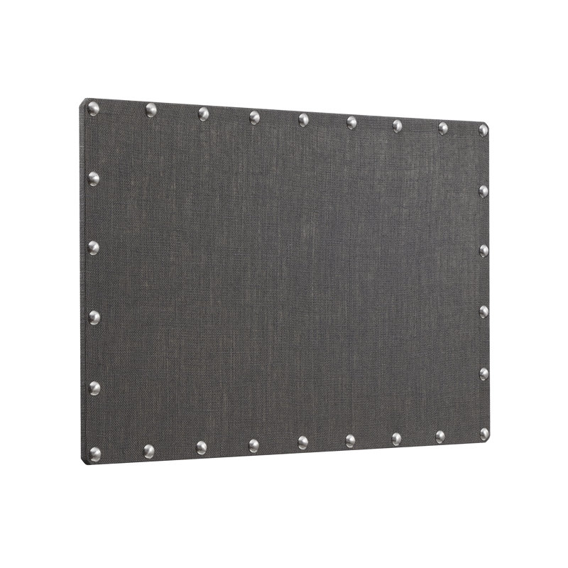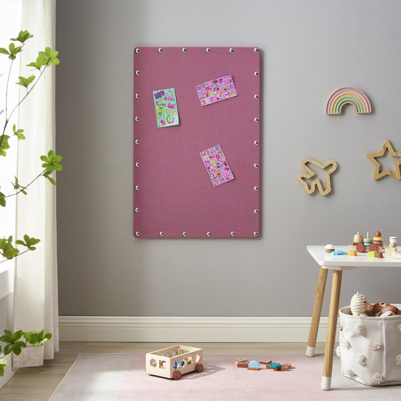 Ideal for placing in an office, kitchen, or entry, the corkboard is perfect for creating a note and message-taking space in your home. The burlap-covered cork and MDF are accented with oversized silver nailheads. Easily hands vertically or horizontally.