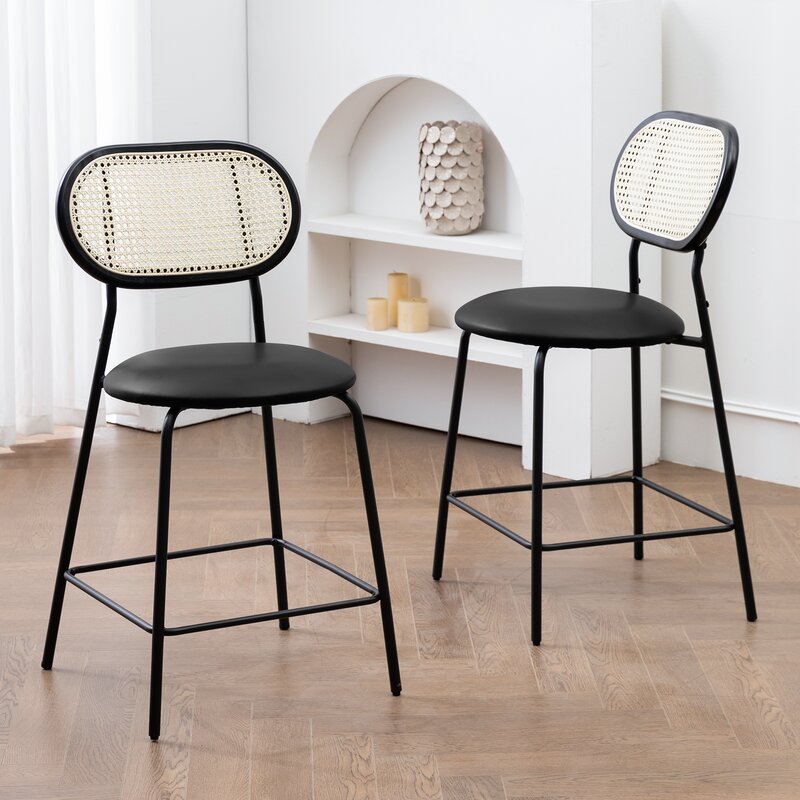 Very nice counter stools.Light weight and yet sturdy.Love the rattan backing.The combination of all the materials make for a nice design.They’re not too big do not encroach on space.Neat appearance to them.