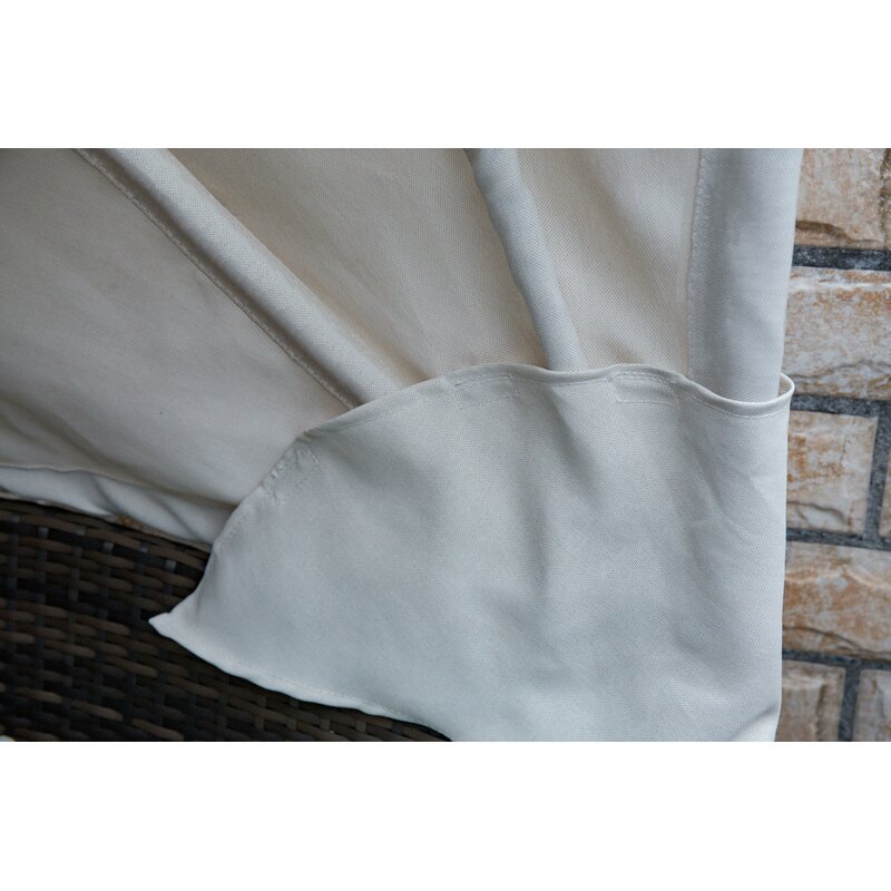 Looked a little smaller than I expected but now I love it. It was easy to put together and you can see the quality of all–base, canopy,and materials. I would buy this company’s products again.