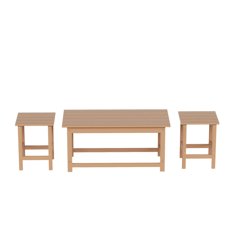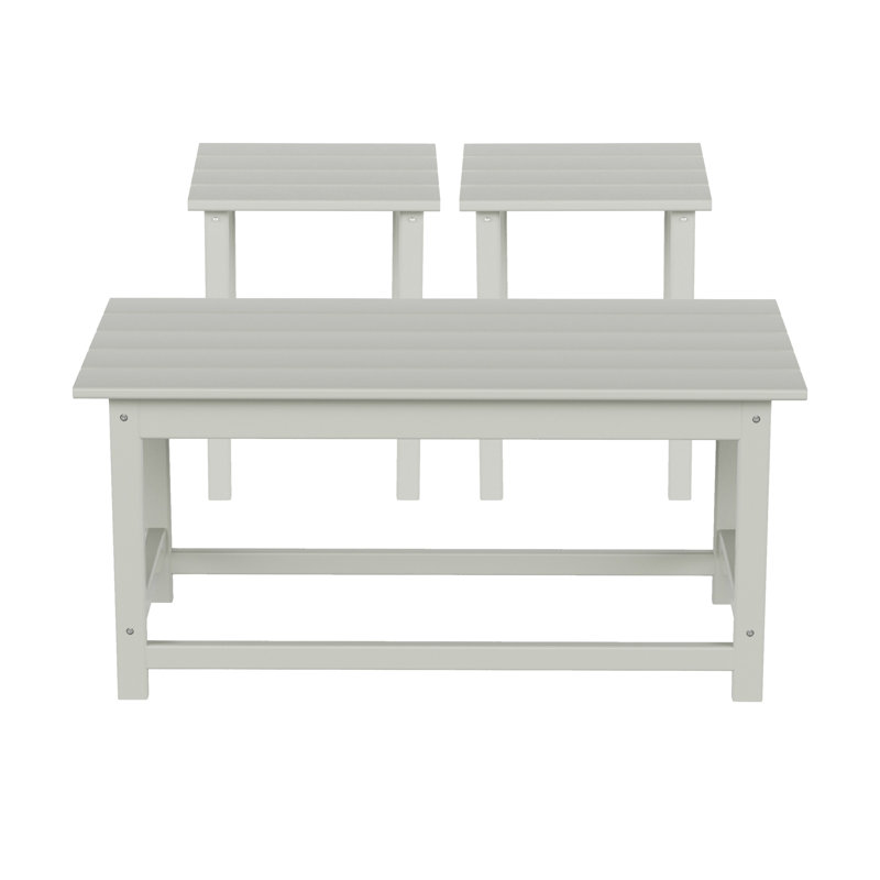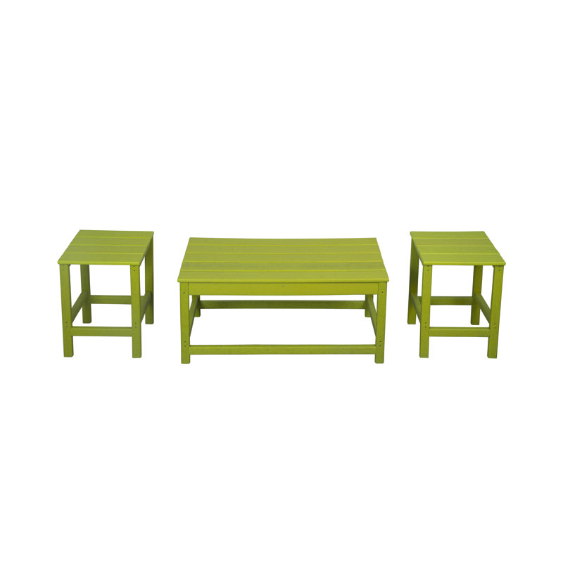 Brighten your outdoor living space with these all-weather resistant 3-piece table set is a perfect choice for indoor or outdoor use. Â These tables are made with durable, weather and UV-resistant eco-friendly materials for long-lasting beauty.