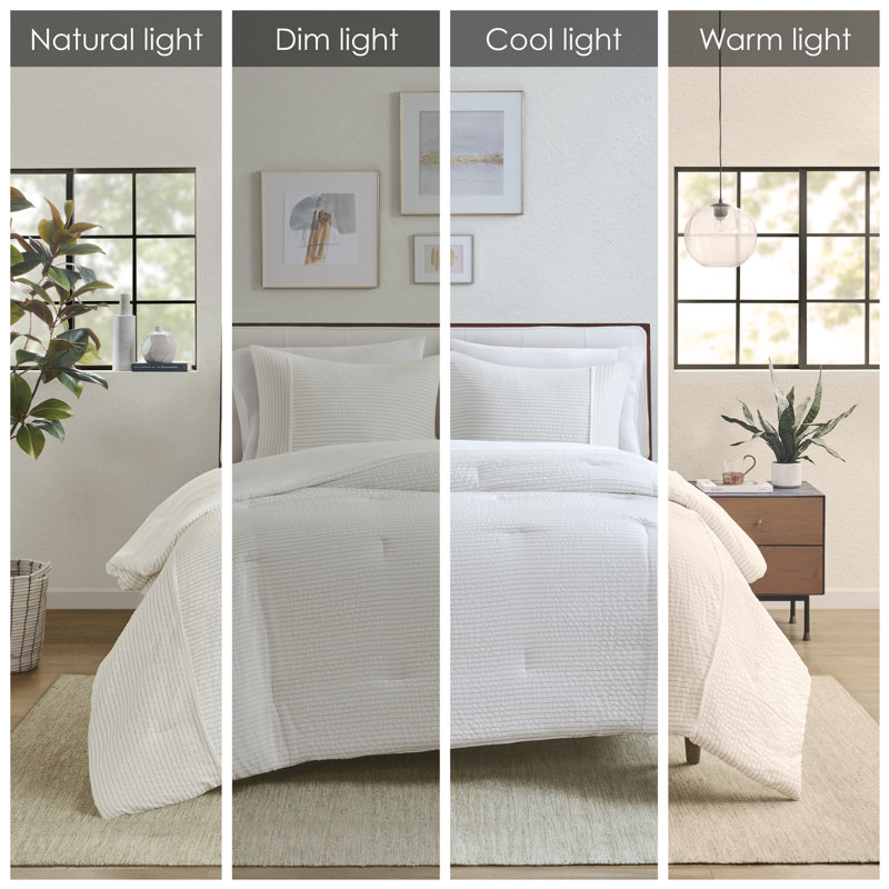 Bring a laid-back look to your bedroom with this striped seersucker comforter set
