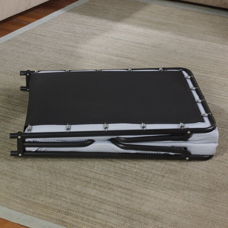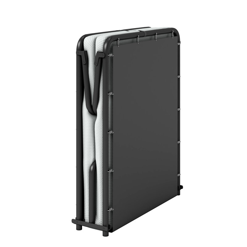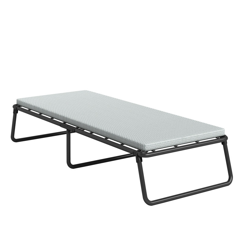 The beauty sleep foldaway guest bed is the ideal solution for your next overnight guest. Enjoy a durable, easy-to-store bed with the comfort and quality you can expect. Designed with comfort and convenience in mind, a sturdy perimeter spring suspension system and heavy-duty reinforced tubular steel provide a comfortable, no-sag sleep surface. Sleep comfortably on a layer of advanced comfort memory foam combined with a layer of ultra-supportive foam. The light blue cover is removable and washable for easy cleaning and added convenience. A slim folded profile with secure storage straps ensures storing and traveling are simple and hassle-free.