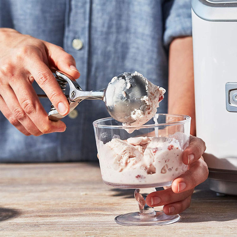 Bene Casa Stainless steel Ice cream scoop can be used to create beautifully rounded balls of every dough. Made from premium food grade stainless steel, these superior scoops contain no harmful chemicals or toxins to leach into your food. You can be confident of food safety. Strength, and durability with these commercial quality kitchen tools for cooking and baking. These scoops relieve pressure on your wrist and hand. With no spring, this perfect scoop glides easily and does not require intense effort or tireless hand strength. Wont pit, corrode or rust even with repeated washings. Keeps Gleaming Shine Wash After Wash. Simple and easy to use and clean.