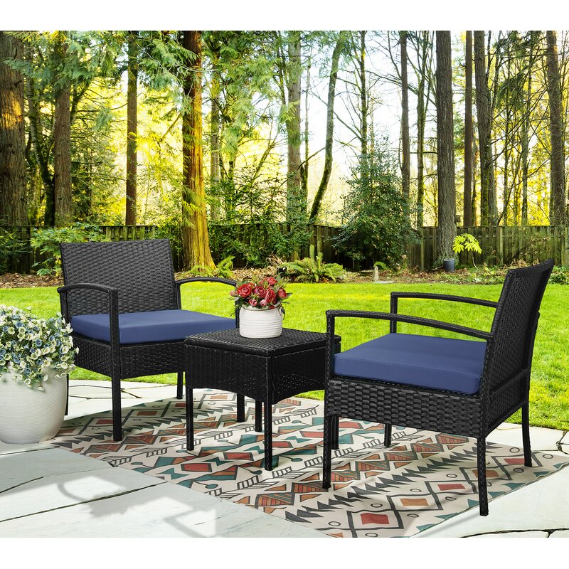 Catch up with a friend over a drink or coffee in the backyard with this 3 piece patio conversation set, complete with 2 armchairs and a side table. Crafted from rust and water-resistant PE wicker rattan wrapped in powder-coated steel, it is suitable for conversations outdoors. Decorate your garden, front porch, backyard, or poolside with this set, and settle down with a friend or family to enjoy the sunny breeze.