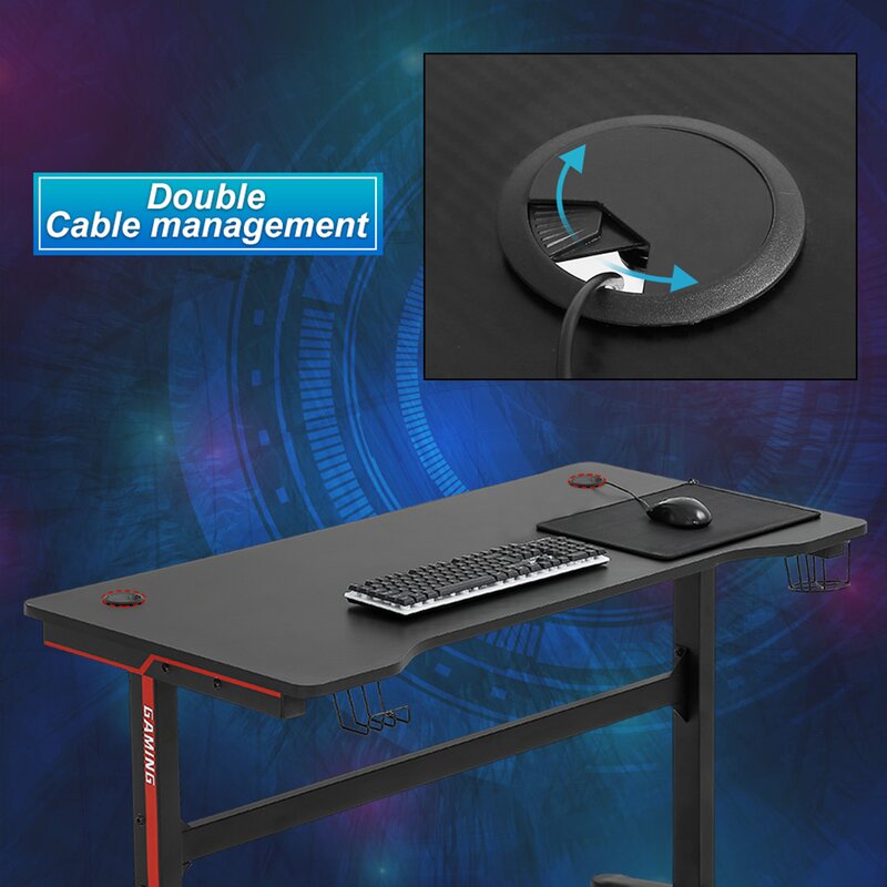 The desire for the perfect gaming setup: the innovative gaming desk brings together a powerful computer integrated into a desk designed especially for gaming with all the accessories in one entirety. this PC gaming pro desk comes with a cup holder, headphone hook, and two cable management holes. It is not only a gaming desk but also a multi-functional workstation. With a modern and elegant appearance, provides comfortable gaming and working environment.