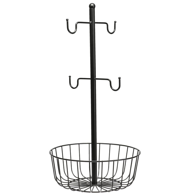 This Mug Tree was very convenient in rearranging my counter. It holds my large mugs and my K-cups in the basket next to my Keurig; easier than looking for the right cup.
