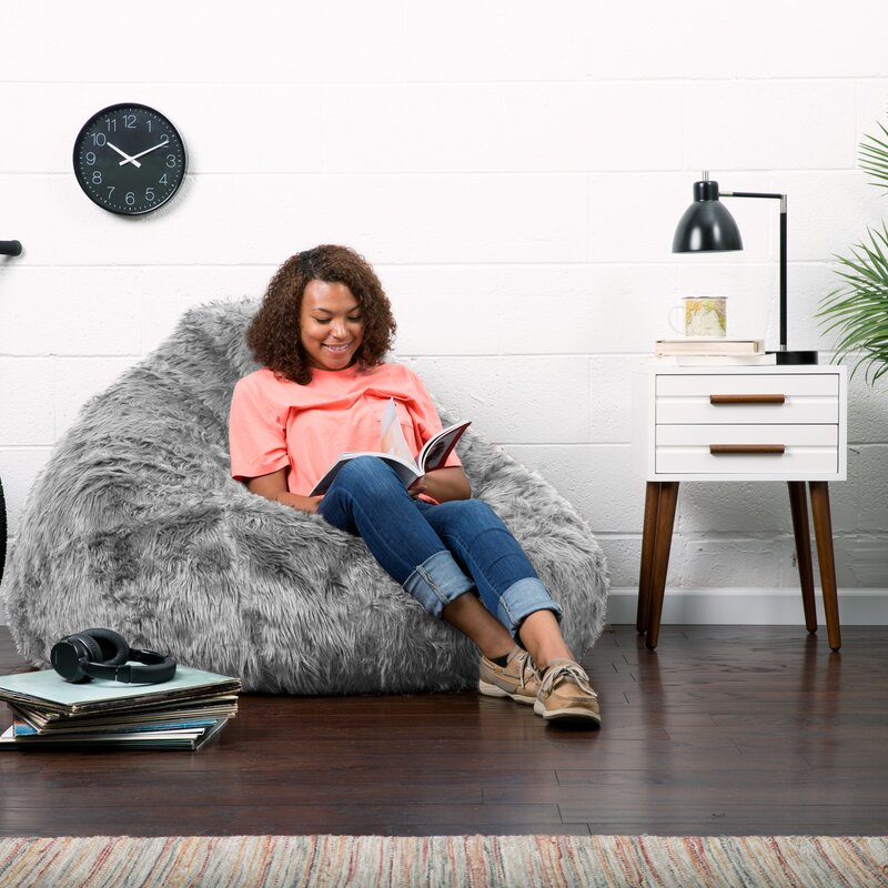 This adult sized, tear drop bean bag chair looks perfect in my teen daughter’s room! She will be using it for reading and computer lap top assignments to help her concentration, but it’s also comfy and fun. The Big Joe Bean Bag chair she chose is winter white and fuzzy, arrived in a big cardboard box, and was ready to use. It’s well constructed and will probably go to college with her in a few years. I would recommend this product if you are looking for a well made, stylish bean bag chair for your teen or an adult.