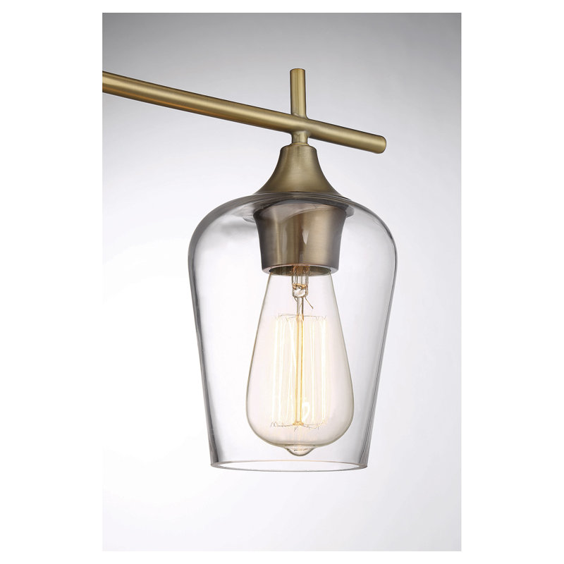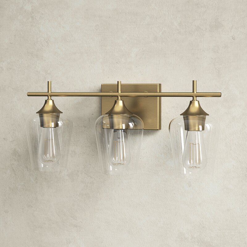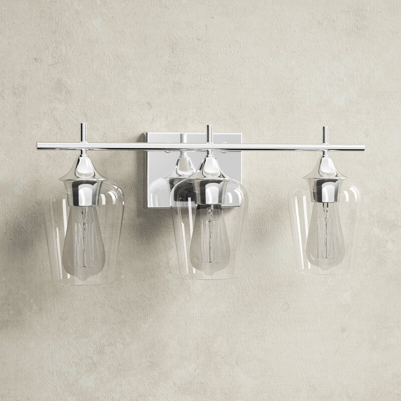 Why not brighten up your bathroom vanity in a clean-lined coastal style with this vanity light? It features tapered glass bell shades with open bottoms and a hand-blown look, which hangs from a steel arm and backplate in your choice of finishes. We love that this vanity light holds up to dampness in your bathroom. It takes three 60W bulbs (sold separately), and it’s dimmable, so you can adjust the lighting level to suit your sleepy eyes in the mornings. Plus, you can install this hardwired light facing up or down so that it’s just right for your space.