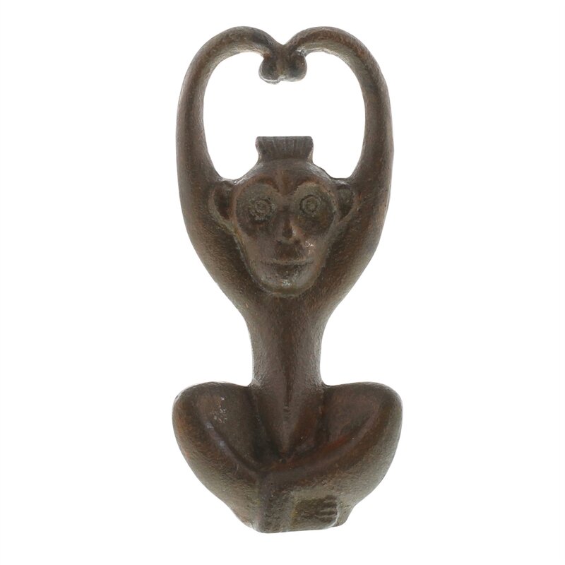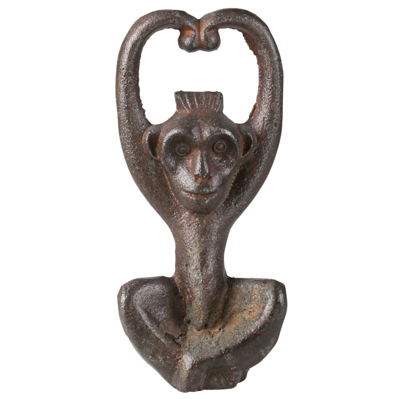 This cast iron bottle opener has a rustic, whimsical charm, featuring the intricate textured details of a monkey.