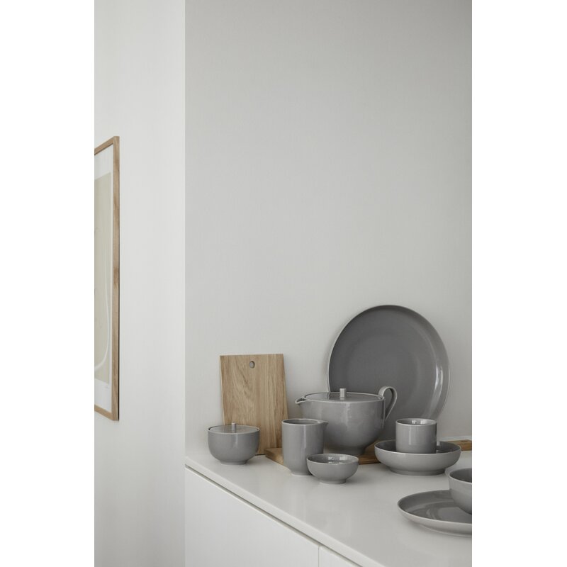 A porcelain sugar bowl with a lid is a beautiful piece of the dinnerware and serve ware line. Asian aesthetics meet Nordic design! It is inspired by the Japanese tea ceremony. This sugar bowl makes a beautiful service with its cups and saucers, teapot, and creamer. Porcelain is the most rigid material among the ceramic substances, and its pieces are high-end designs manufactured with pure raw materials at high burn temperatures. The items are robust and resistant to scratching and breaking – although their appearance features very genteel delicate curves. Slight variances and shades are traces of handcrafted refinement and reflect that each piece is an individual work of art.