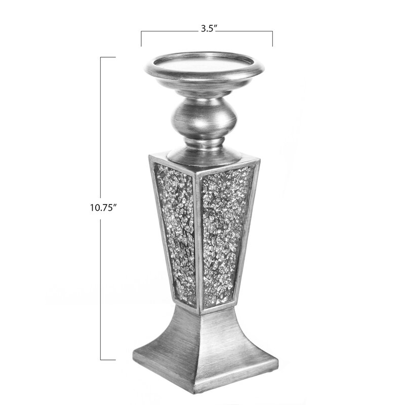 Elegantly contoured with an exquisite crackled mosaic design, this set of two candle holders makes for perfect silver table decorations and blends beautifully with any home decor