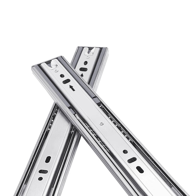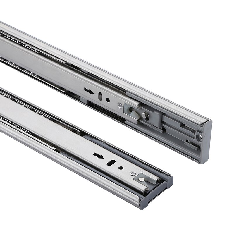 Three-stage damping buffer sliding rail, in addition to ensuring a good mute effect, also can protect furniture to the greatest extent, reduce the wear and tear of furniture, increase service life, bring you the feeling that high-grade furniture just has.