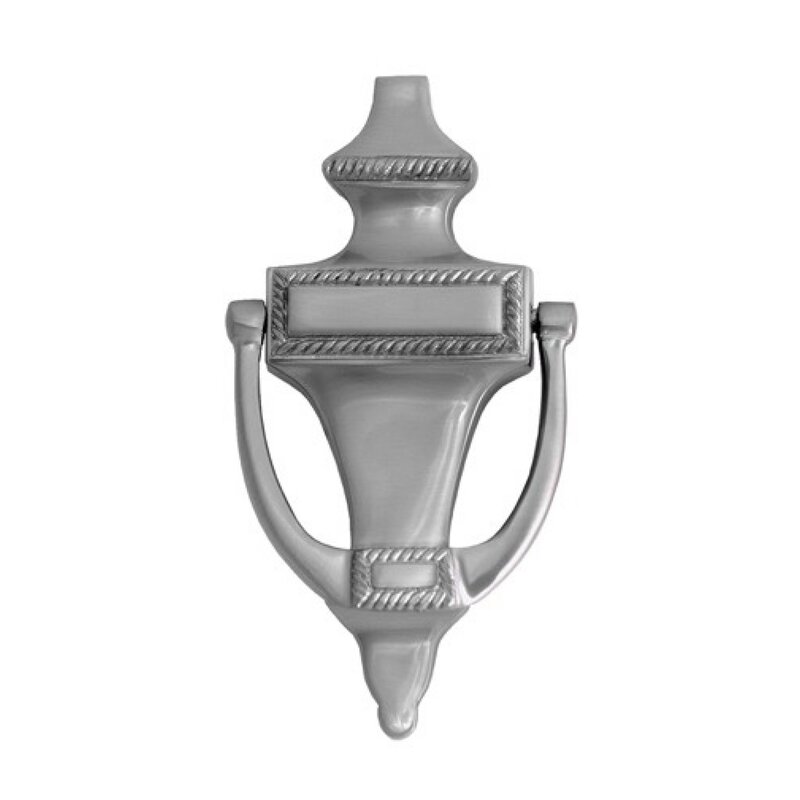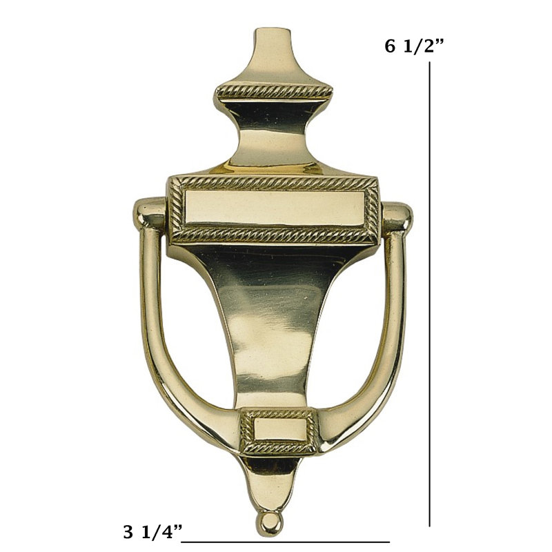 This more modestly sized English rope trimmed door knocker is often referred to as being cast in the Georgian style. The basic urn-shaped rope door knocker stands out in any of our antique finishes. Center to center 4-1/8″, projection 7/8″, width 3-1/4″.