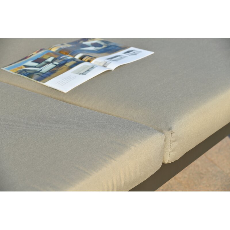 The base of the bed is made from steel, the cushions are stylishly covered with fabric upholstery and supported by a steel frame to create 2 dual adjustable sunbeds from either side. This item is only used for sunshade and is not waterproof. To ensure the longevity of the product, it’s recommended to cover it during bad weather or winter.