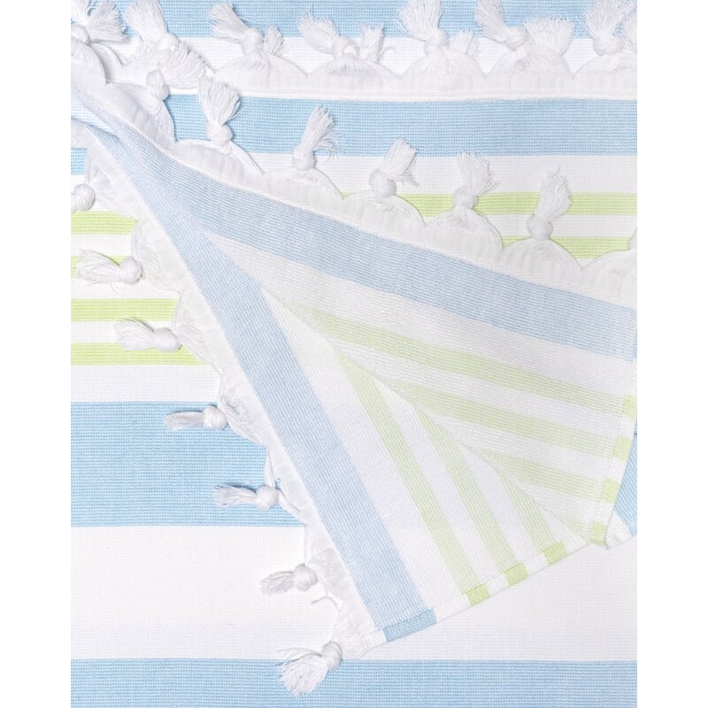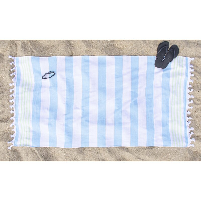 Hang by the pool or lounge on the beach in style with the Marlowe Stripe with Tassels Beach Towel. Constructed from Cotton, this towel offers a smooth, comfy surface for lounging while also being highly absorbent to get you dry quickly. This oversized towel features a woven texture that is soft to the touch on one side and fast-drying terry cotton construction on the other side. Enjoy some fun in the sun when you lounge atop the varying stripe design which is featured in an array of bright, seasonable color options with tassel details on the ends for modern style. Wherever your aquatic adventures may take you, this lightweight towel folds up compactly to fit into any beach bag or suitcase.