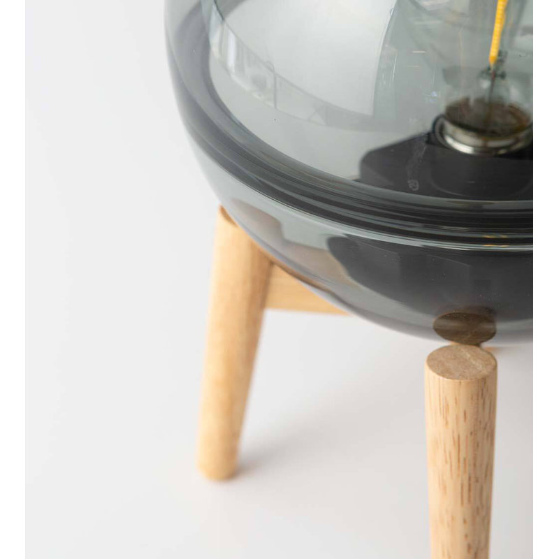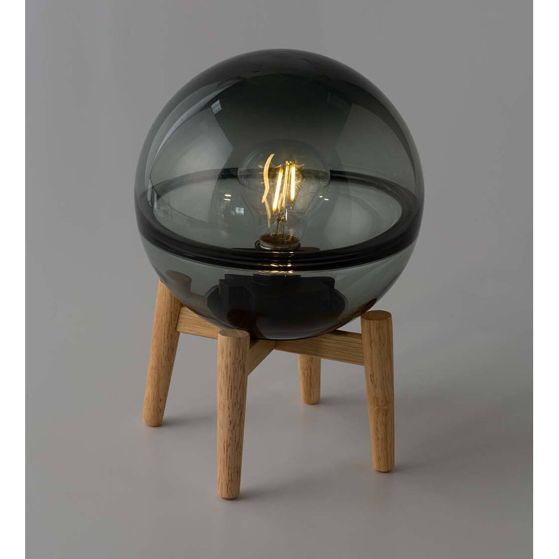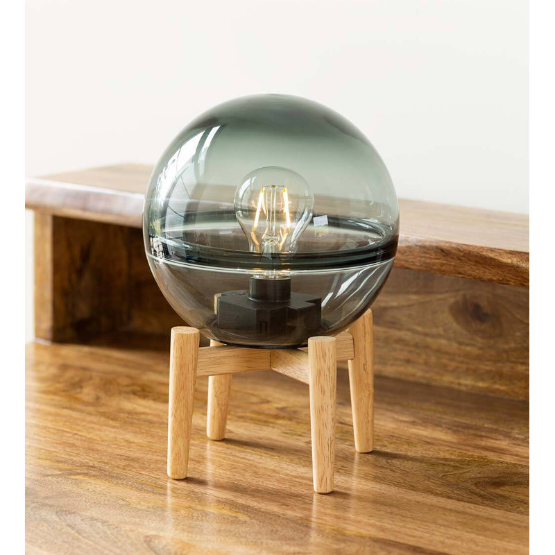 Boasting a smoky glass globe with a wooden base, this lamp adds a touch of natural appeal to your home decor while illuminating your space with just the right amount of light.