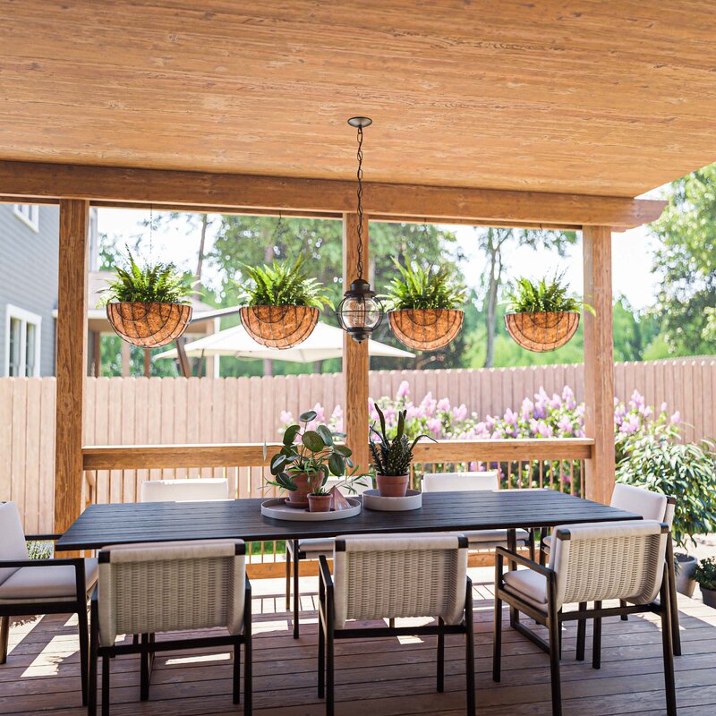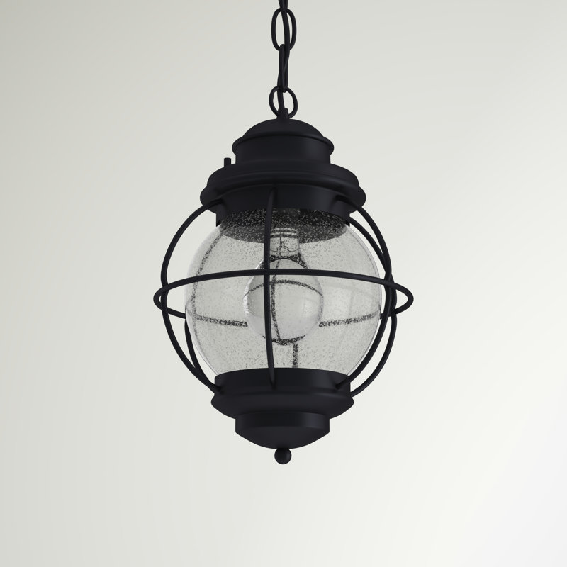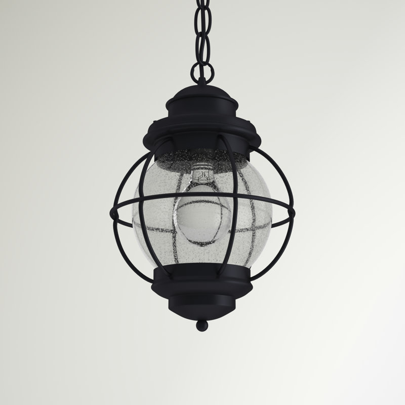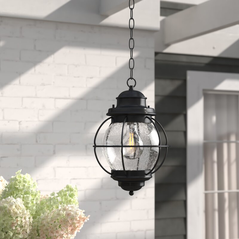 This coastal outdoor hanging lantern is sure to help make sure your nightly way home is smooth sailing. It’s crafted with an open metal frame that holds around, a seeded glass globe shade for a nautical-inspired look. This hardwired outdoor pendant light hangs from an adjustable height chain, and it takes one standard lightbulb up to 100W max (sold separately). Best of all, it resists dampness out on your covered porch or patio, so it’s just right for illuminating your front door or adding ambiance to alfresco dinners.