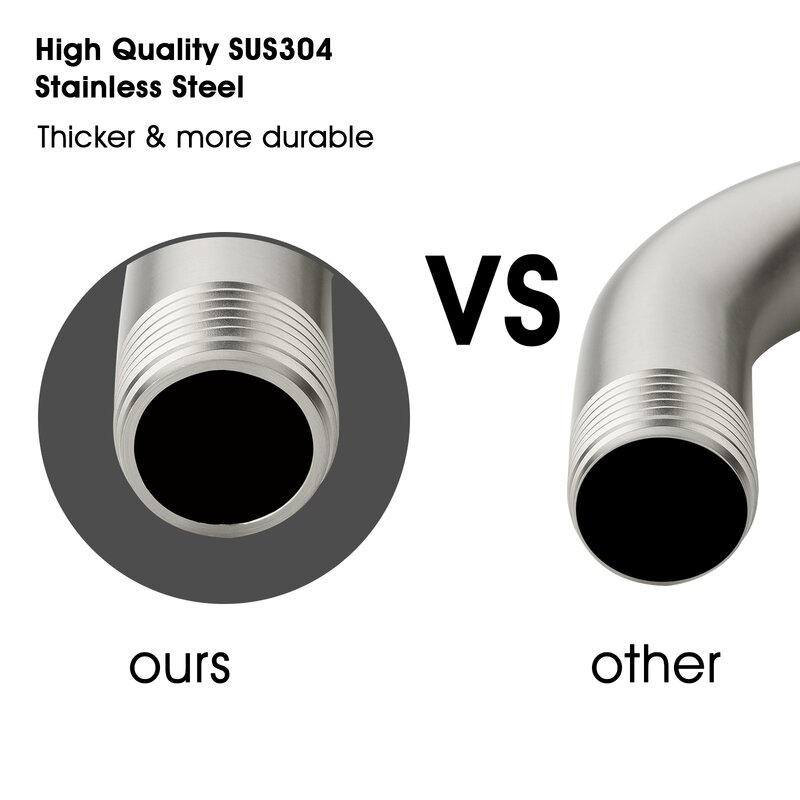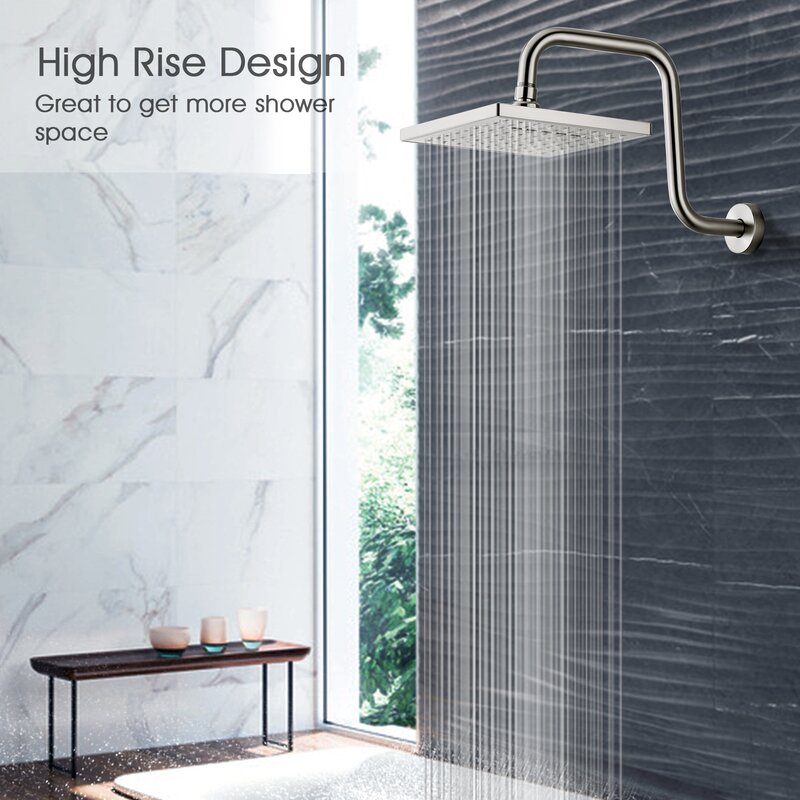 Easy tool-free installation – the high-rise shower head extension arm has 1/2†NPT thread that fits a standard shower wall pipe, and universal g1/2†thread fits standard shower heads. Just twist it on without any tools, no plumbers are required, and only takes you a few minutes to install, comes with a flange as well to cover the pipe, also free Polytetrafluoroethylene tape is included.