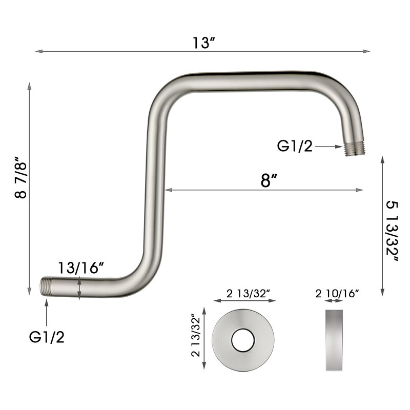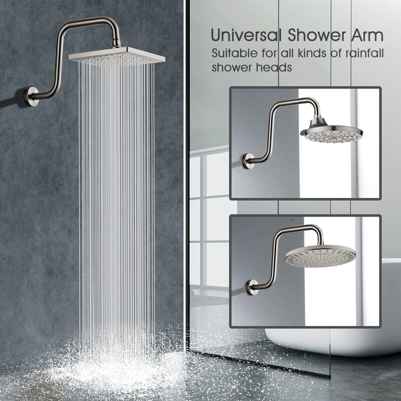 Are you looking for a high-rise and solid shower arm for your new house or to replace your old one? Bright shower’s 13-inch s-shaped stainless steel shower head extension arm is a good choice for you, it can help extend the length of your existing showerhead by 13 inches and the height by 5 inches which is perfect for those low pipe connections or tall people to get a more impressive rainfall shower experience.