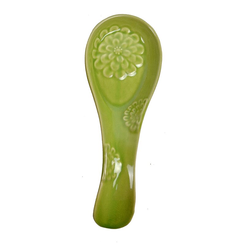 This colorful spoon rest is crafted from ceramic. Each spoon rest has an embedded floral design, beautifully bright, and inviting colors to add to any kitchen décor.