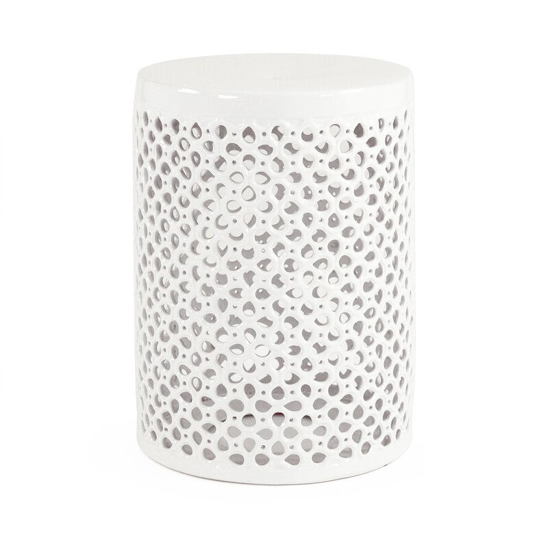 These garden stools (I bought 2) are beautiful and a perfect fit in my new home. They are white with a high gloss finish. Yes, they have a “mostly” flat top that will hold a drink – I would not try a wine glass with a stem but all other mugs and glasses are fine on mine. They make lovely small end tables in my small home. Refer to the dimensions so you are not expecting something larger. The information about this product is accurate which has always been true when I have ordered from Wayfair. The packaging to protect them was amazing and they arrived in mint condition! I highly recommend and would definitely buy these again.