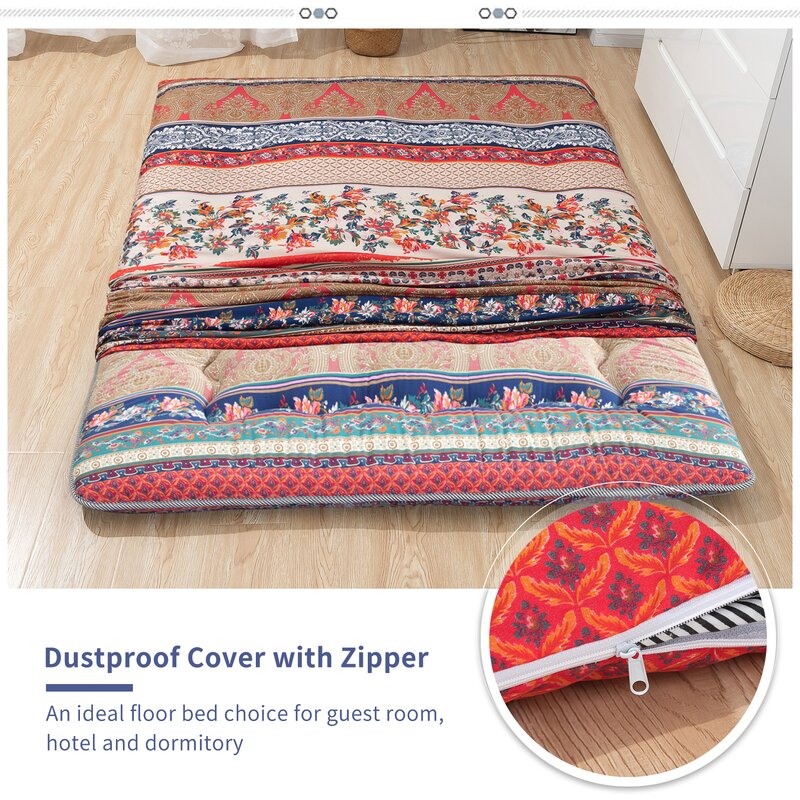 Futon Fabric: The floor mattress cover is skin-friendly microfiber cotton fabric, and the mid-filling is cotton and memory foam, offering good support when you lie on the mattress. The futon adopts excellent workmanship of a three-layer volume design, making the floor cozier to sleep on.