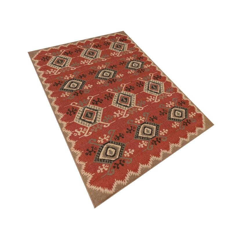 Add personality to any room in the home with our Kilim rug. It adds a sense of completeness to a space and a hint of tribal flare. The harmonious earthy hues and eclectic look of the rug work well with any style of décor, in red. Wilton Woven of 100% polypropylene, these vibrant, weather-resistant rugs are low-profile and durable yet feature a subtle pile creating a unique floor covering which is both versatile and soft underfoot. The low-profile nature of Lotis offers a casual lifestyle look with versatility to use nearly anywhere inside or outside the home. It is treated for fade resistance to ensure long-lasting beauty. Limiting exposure to rain, moisture and direct sun will prolong rug life.