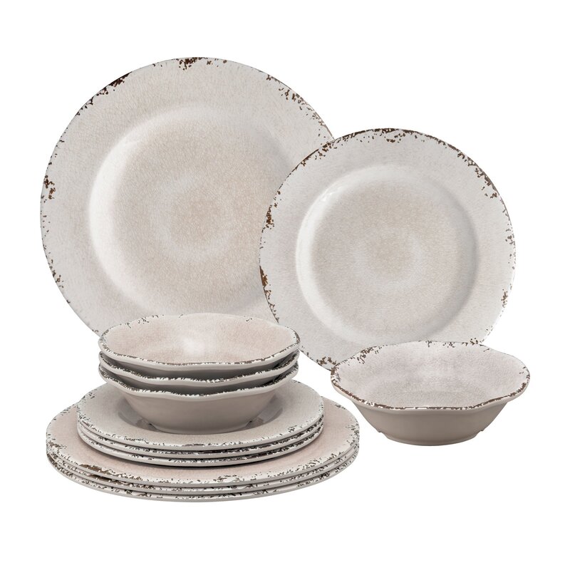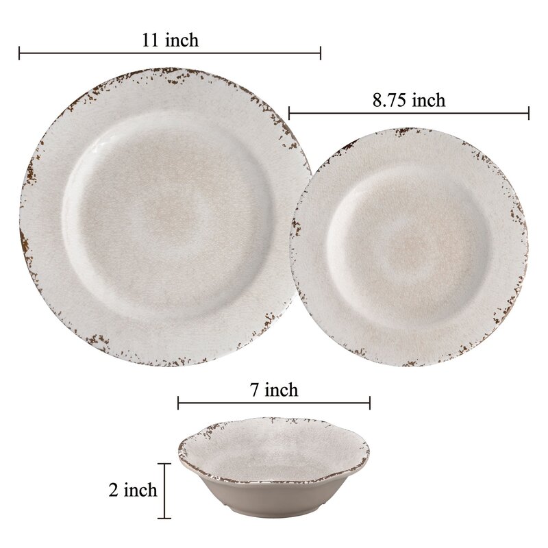 This crackle melamine dinnerware is perfect for all your indoor or outdoor entertaining. With its rustic-chic design, the dinnerware has the look and feel of glazed pottery. Easy to clean and top-rack dishwasher safe.