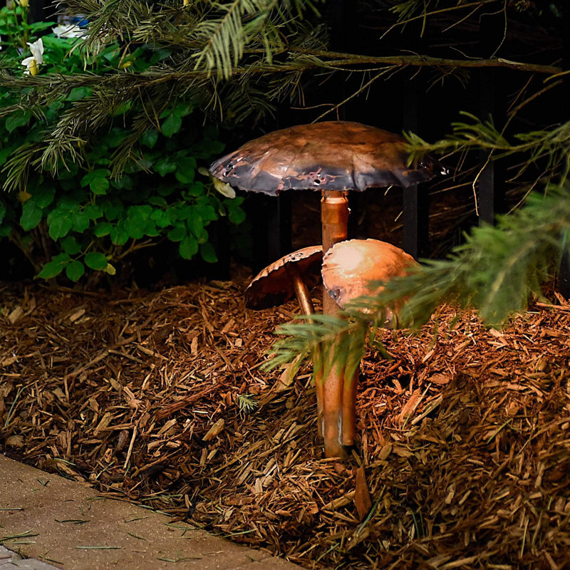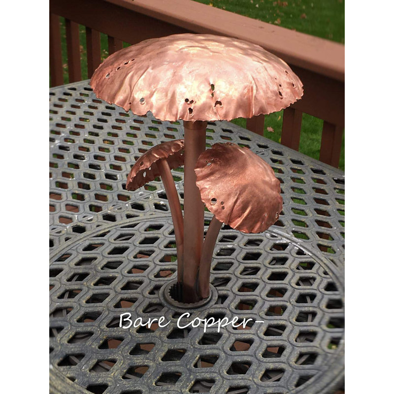 Scientific design: this beautiful single pole solid copper umbrella mushroom lamp is forged and made by hand. It is 15 inches higher than the ground, and the remaining 9 inches will be buried to provide support. The big mushroom cap has a diameter of 11 inches and a stem diameter of 1 â…› inch.