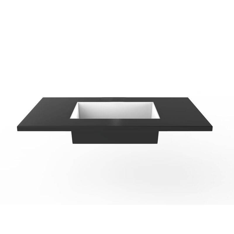 Embrace modern design and feel with this minimalist vanity top with sink. Simple yet sophisticated, this modern top completes your desired vanity in both form and function. Its standard rectangular design with clean lines works well in many bathroom decor configurations and setups. Made with high-quality and durable solid surface material, this top with sink features a clean and consistent color throughout as well as durable construction to ensure lasting quality and appearance. The surface can be easily cleaned with most non-abrasive cleaning agents. A great accent for any washroom, bathroom, or powder room.