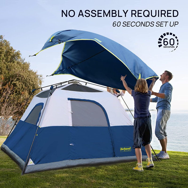 ã€BeyondHOME Instant Cabin Tent for Camping】Spacious Interior – Make you feel at home. Weather Resistant – Bring you a sense of security in the wild. Multiple Cares – A great and durable camping companion for your family! BeyondHOME Tent – Suitable for All Weather 1. In sunny days, attach the rainfly if you want to avoid the sunshine; detach it to have a good vision of the bright or starry sky. 2. In rainy days, close all the window and attach the rainfly, then you will be absolutely safe from water. 3. In windy days, fix the tent and the installed rainfly with stakes, it can stand strong wind up to 35 mph.ã€Instant Cabin Tent】The installation of the inner tent (without rainfly) only takes 60 seconds. ã€Gear Loft】This is one of the included attachments, you can hang the oil lamp or flashlight on it. ã€Mesh Bags】There are mesh bags inside the tent for easy storage. ã€Camp Port】It’s a small entrance for charging cables if they are connected with a generator, greatly increasing the convenience.