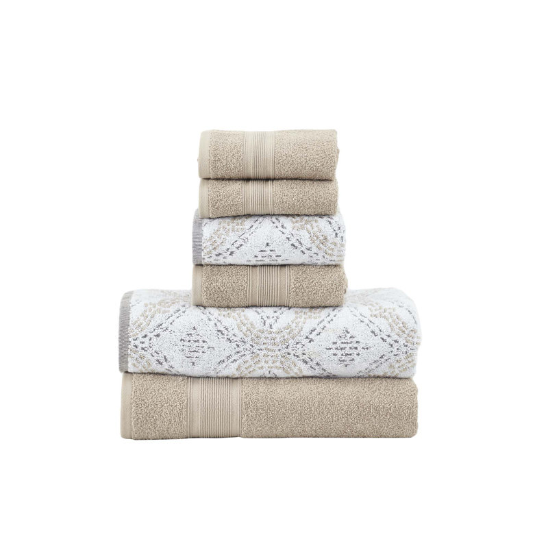 Timeless yarn-dyed jacquard towel set: give your bathroom a facelift with our 6-piece jacquard towel set. Including two hand towels (a solid & jacquard), two washcloths (both solid), and two bath towels (a solid & jacquard), they’re supremely soft and highly absorbent. Perfect for your personal and guest bathrooms, spruce up your decor with our luxurious, hotel-quality towels. Quick-drying & super-absorbent design: expertly weaved with impeccable 550 GSM combed cotton, our jacquard towels are designed to quickly soak up water after a long bath or shower. Immerse yourself in plush spa-like quality every time you dry off. Our towels are Oeko-tex standard 100 certified, showing success in crafting healthy products that are also good for the environment. Made from 100% combed cotton: we source only the best materials for our luxury bath towel collection. That’s why our contemporary jacquard towels feature pure combed cotton that’s both soft and strong. They’re easy to maintain with a cold machine wash and low tumble dry—and they get even softer with every wash. Elevate your personal or guest bathroom décor: offered in a variety of timeless color hues, beautify your bathroom decor with our trefoil filigree jacquard set. Use them as decorative hand towels for your guests, upgrade your towels, or gift a set to your loved ones. One thing’s for sure: you’ll immerse yourself in pure luxury that harkens back to your favorite vacation each time you use them. Dedicated to providing your home with luxurious textiles: we’ve been dedicated to providing quality textiles at the intersection of luxury and functionality for over 40 years. As a family-owned brand, we understand your priorities in arranging a modern and comfortable home. That’s why we source only the best materials and craft luxurious products to last for years to come. Every item is designed with care by our California studio team.