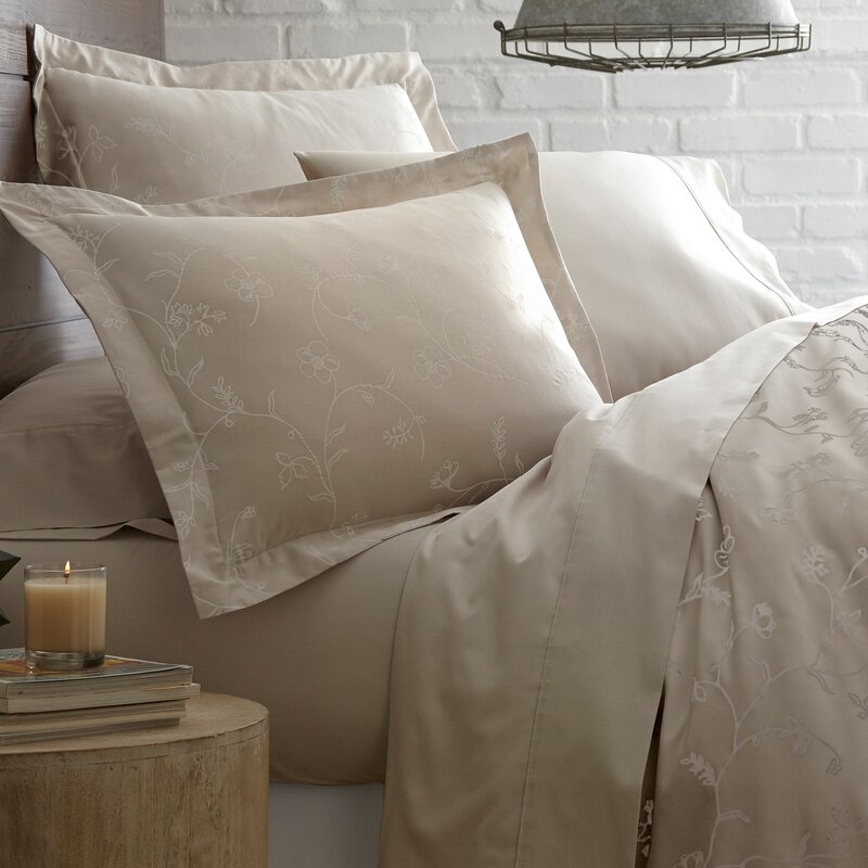 We just moved to Arizona and bought a new home we plan to live in forever. I decided I wasn’t going to settle for quickly picking things out for the guest room just to get it done, I was going to take time to pick out exactly the right bedding. I searched high and low for duvet patterns, and perfect color, quality of fabric (handling in wash/dryer, iron/ no iron, how it’s made, etc) and how the fabric will feel- soft or rough while sleeping. I’ve got to say when I saw this I was so excited and then when I opened the it I was really over the moon. I threw the duvet cover and shams in the washer inside out on cold/cold (I wash everything on cold to avoid shrinking and fading)and the dryer on low heat. It came out wrinkled and I didn’t have time to put it on right away so I threw it on the bed. A couple hours later I thought I’m not ironing this so I put the insert in it shook it out and it looks fabulous. Now of course if I had used the iron it would be crisped looking but it doesn’t look it just came out if the dryer and sat for a couple of hours either. Basically if you’re in a hurry or don’t feel like ironing it will still look fab. The fabric is so very soft and silky and buttery feeling. I got the sand color and it’s beautiful with the white scrolling flower print. I didn’t want embroidered, didn’t want to deal with snags, been there-done that. So the flowers look painted but it really cool looking. I’m just really in love with it. It’s clean, fresh, simple and I can change the color of accessories (shams, sheets/pillowcases, decorative pillows) in the room every few years to feel like I’ve given the room a makeover without buying a new duvet and breaking the bank. I would recommend this duvet, the print and color or one of the other colors you like. If it’s just the fabric you like for the soft buttery feel find one of their duvets made with it. You won’t be disappointed I promise. Even my husband loved it!