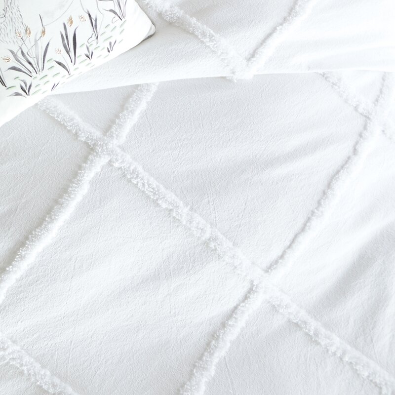 Whether you’re looking to update your teen’s dorm or you’re refreshing your restful retreat, this comforter set is perfect for setting a fresh foundation in your space. A neutral hue allows it to complement any color palette you dream up, while raised chenille accents create a lattice pattern for a touch of texture. Made from 100% cotton, this set is safe to toss in the washing machine and dryer (on a tumble setting) for easy care.