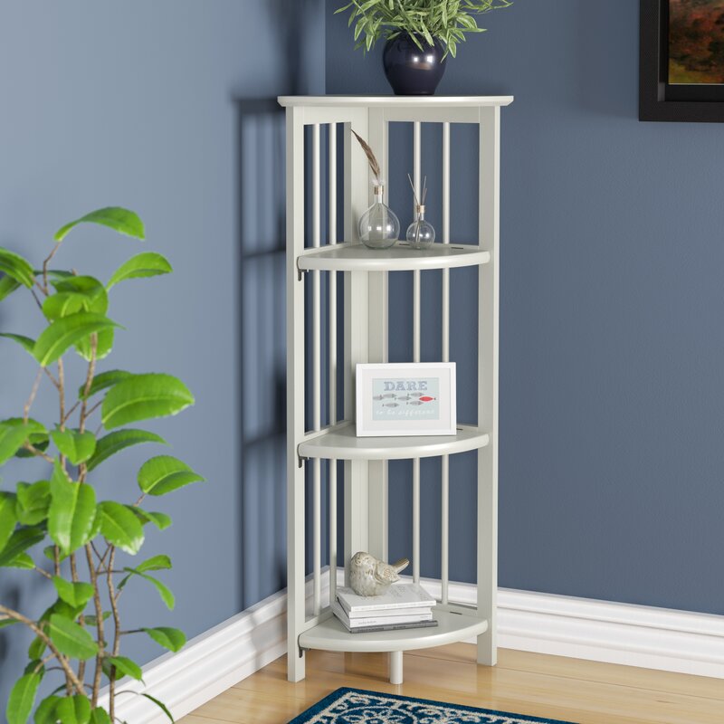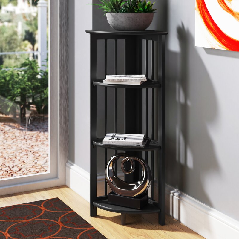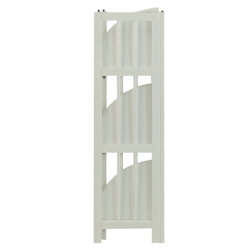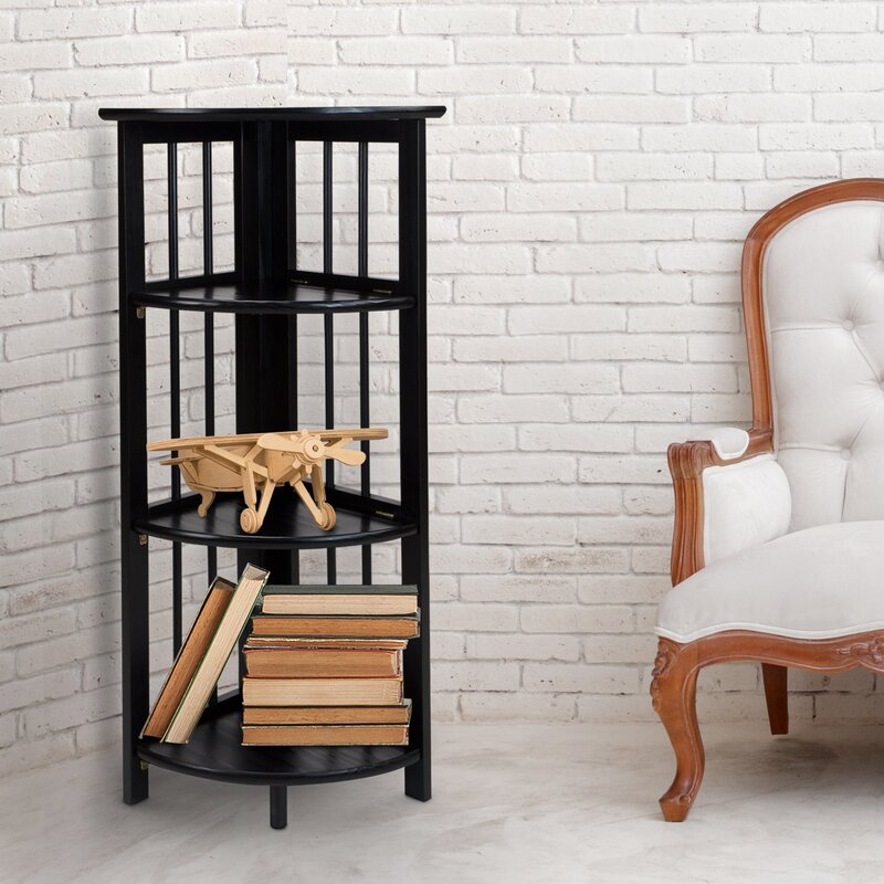 Perfect for smaller spaces like city lofts and first apartments, this bookcase lets you take advantage of every corner – literally! Featuring an angled silhouette that stands 38.75″ tall, its wooden frame fits right into any space where two walls meet. A neutral finish helps this understated design blend with your existing arrangement, while slatted sides and clean lines give it an open and airy feel. To make storage and moving easier, this bookcase can be folded up when it’s not in use. No assembly is required.