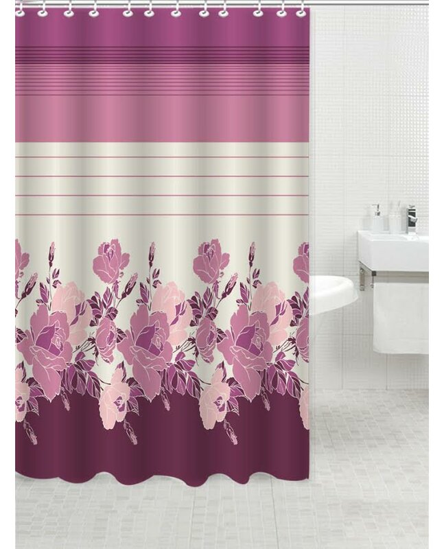 Powder room in need of a pick-me-up? This shower curtain is sure to make it eye-catching! Pairing a striped pattern with a sophisticated floral motif, this piece offers coordinating hues to make your bathroom flush with color. Crafted from machine-washable polyester, you can quickly and easily give it a refresh after one too many splashes. Measures nearly square at 72” H x 70” W.