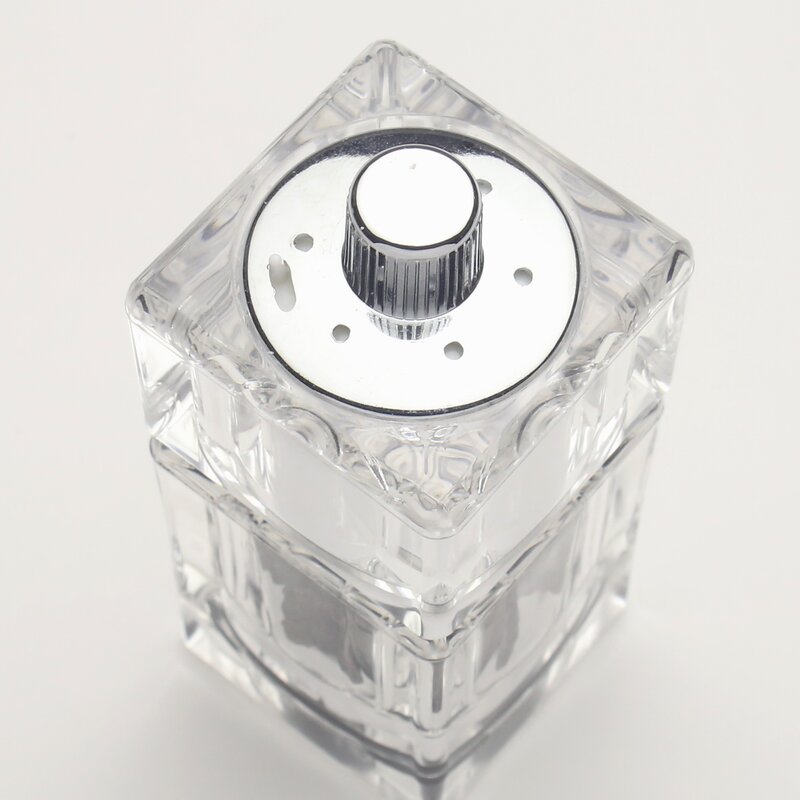 Clear acrylic 3.5″ Cubic 2-in-1 Salt & Pepper Shaker Combination, great for picnics and travel!