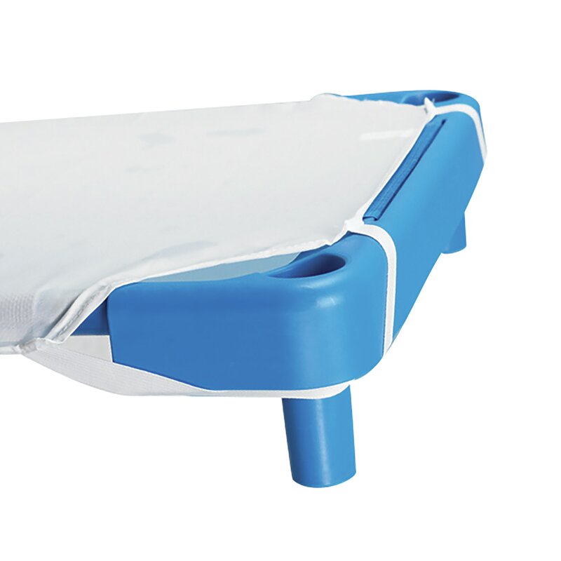 These soft and durable cot sheets help create a comfortable place for rest time. The full size sheets secure to the cot by elastic straps that fit around cot corners keeping the sheet firmly in place during nap time.