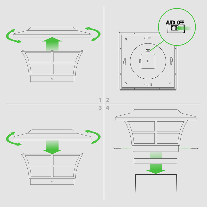 Lights up automatically every night/auto – off switch