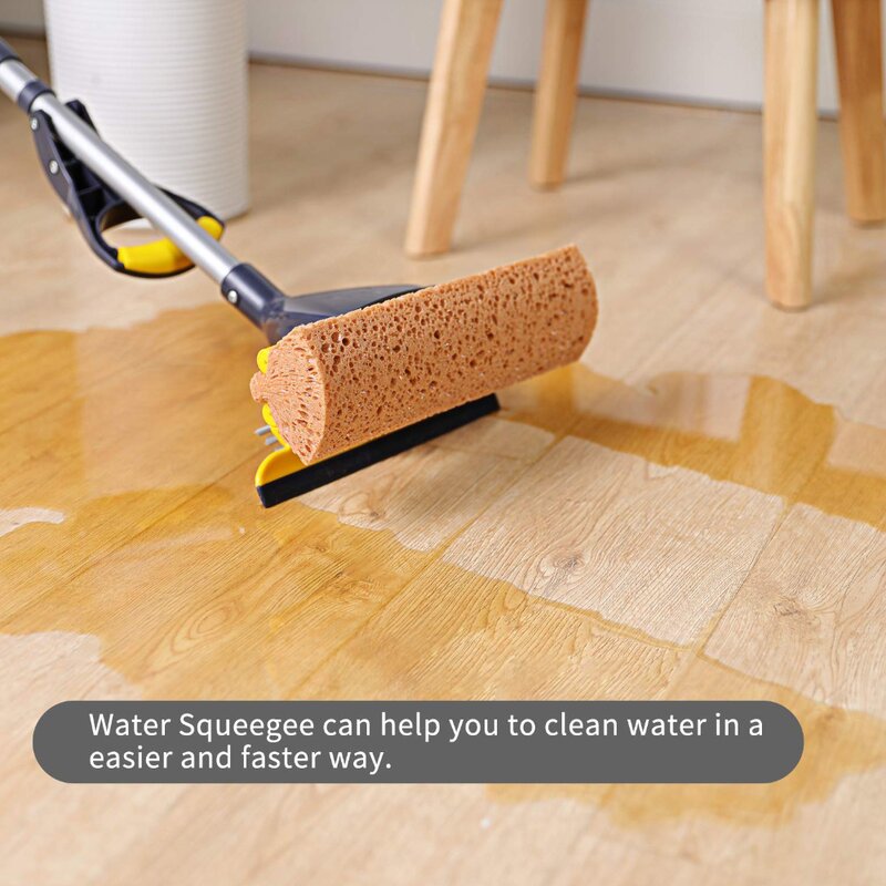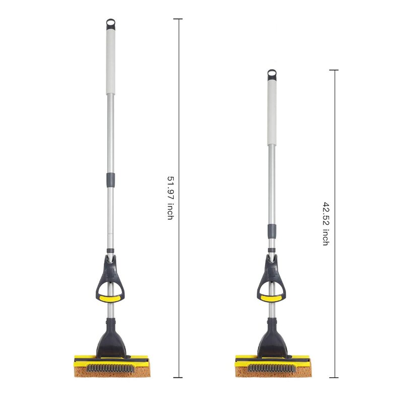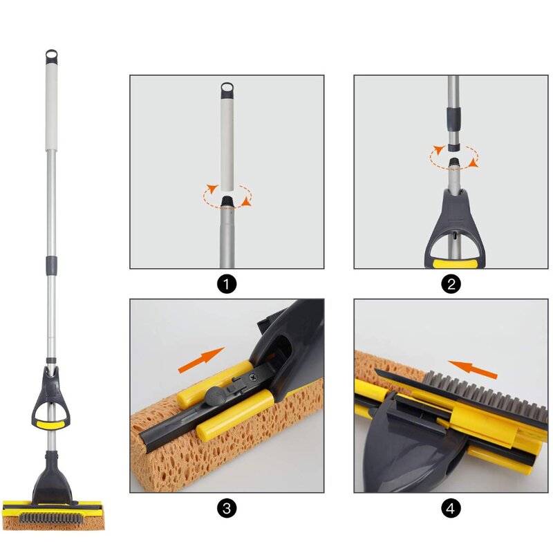 Sponge Mop for Home and Commercial Use. Tile, Floor, Bathroom, and Garage Cleaning. Comes with Squeegee and Extendable Telescopic Long Handle, 41-53 Inches. Easily Wringing