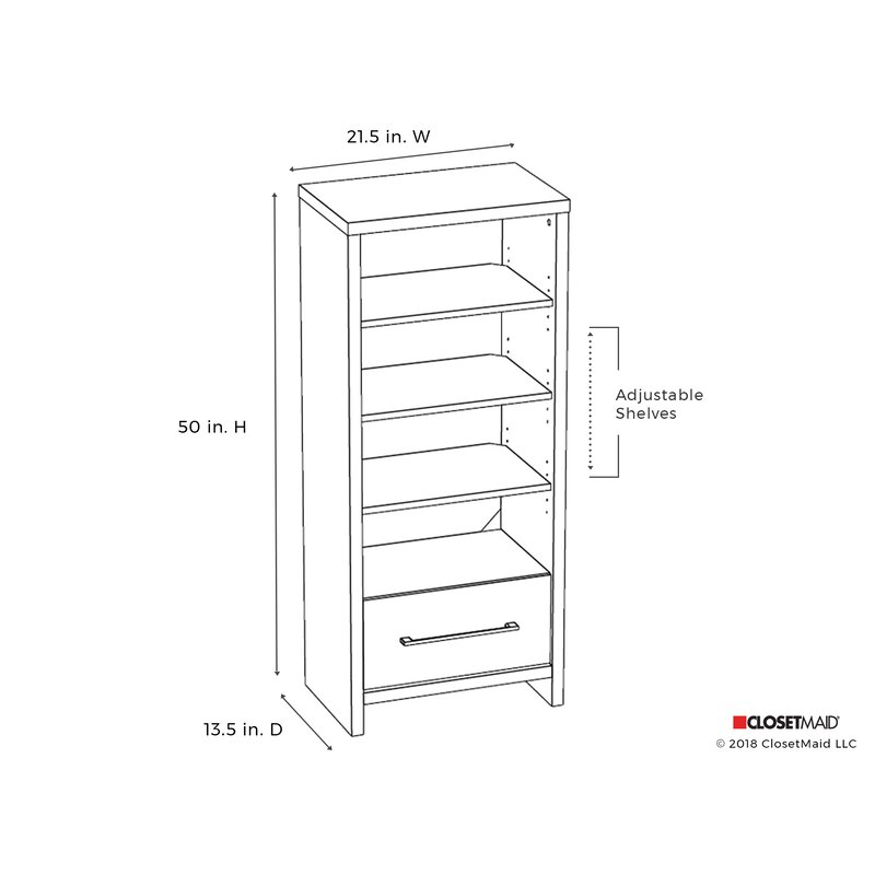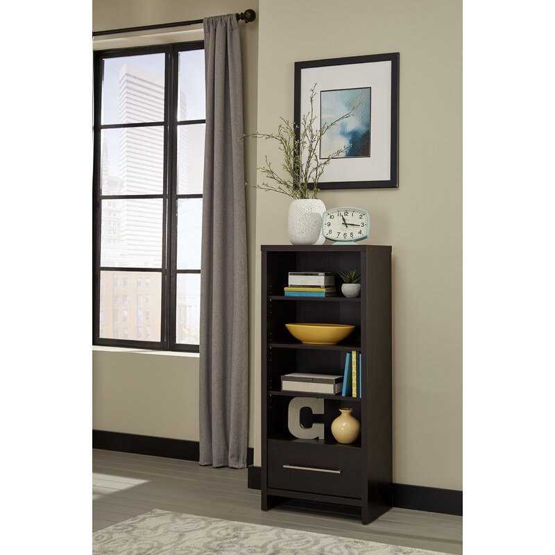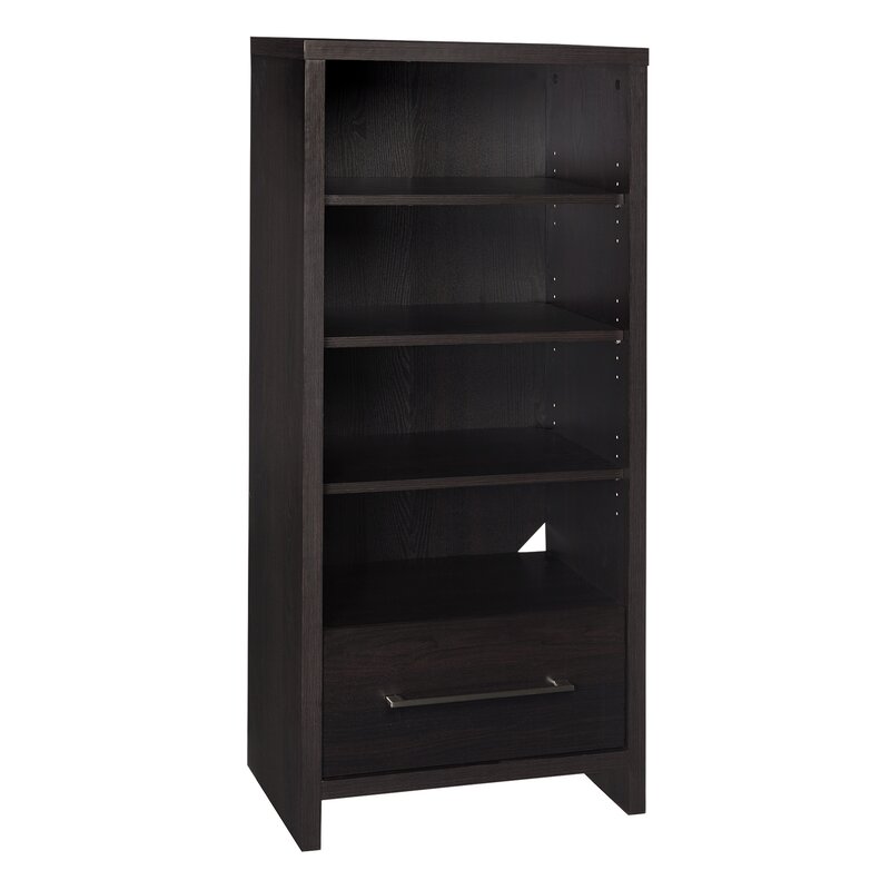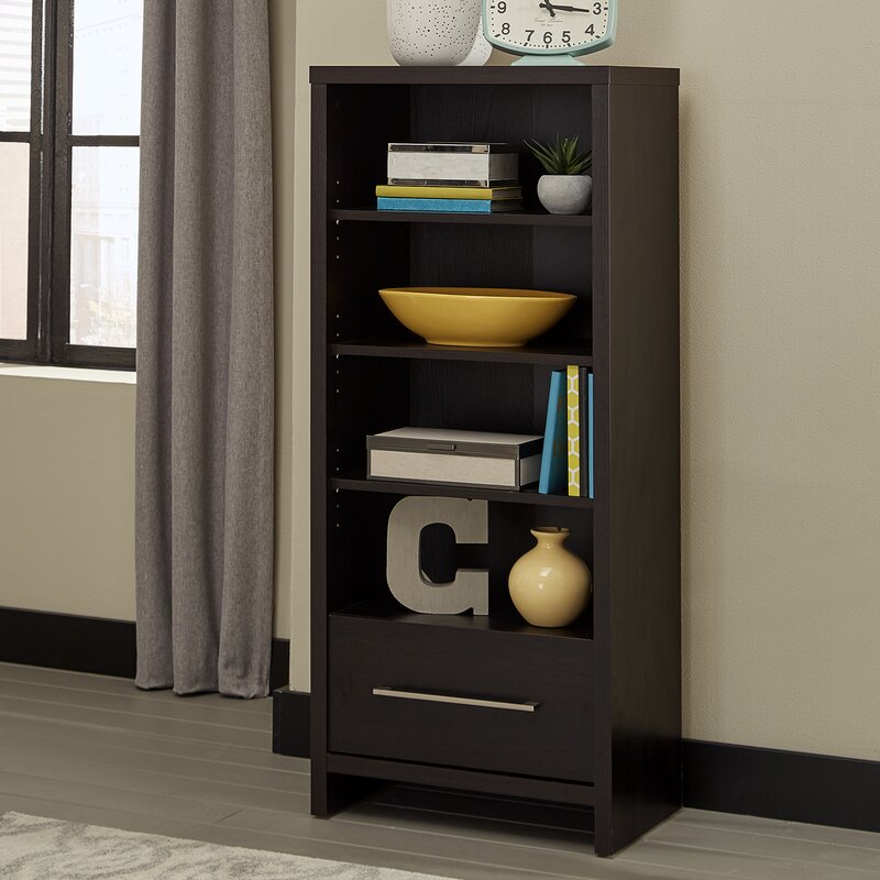 Add the perfect touch to your home office or living room with this sturdy bookcase or media tower. This standard bookcase with a drawer with three adjustable shelves features a full back panel with concealed cord management making it perfect for storing media items, stereos, video games, and more. The large bottom drawer has smooth metal glides adding concealed, stylish storage. Available in two neutral finishes, add this bookcase or media tower to your home decor today.