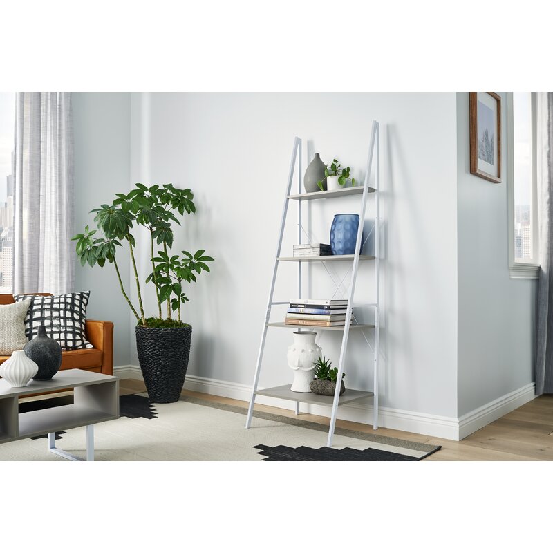 The on-trend style should extend to all the items in your home, and that includes your book collection. A ladder shelf like this is designed for a clean, open silhouette, enabling you to show off not only your titles but also decor objects and knickknacks. This piece features a powder-coated steel frame and four laminated wood shelves of decreasing depth, delivering a budget-friendly industrial-inspired look. This piece is sized to fit easily into taller, narrower spaces.