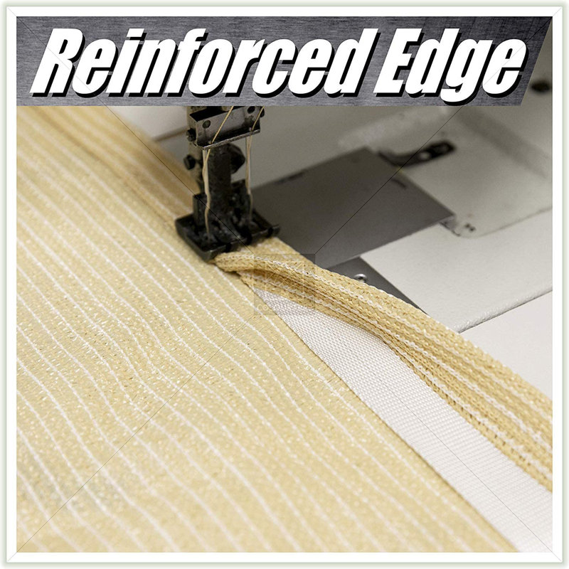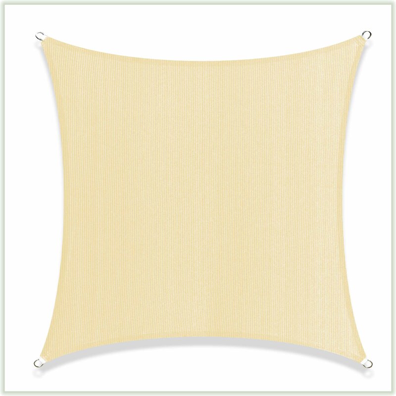 This 10 ft by 10 ft Shade Sail is very high quality.The rings for attaching it are heavy- duty.The fabric was a nice surprise! A thick, very unique texture,with a basket- weave look and feel.As it is snowing outside, I cannot supply an actual In- use picture,but I stretched it out inside to show the size and texture.The color is quite striking also.A shimmery wheat light golden color.In Summer,it will add quite a pop of color and class to my outside seating area!