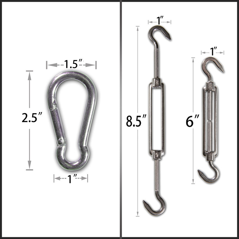 Sunshade sail hardware kit set for sunshade sail, everything you need to set up your sail.